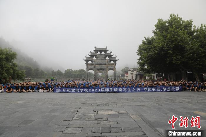 安徽黟县8月2日电 (刘浩 汪伟平 方龙 何彦铭)8月1日上午,来自合肥空间学校的写生研学团抵达安徽黟县西递景区,这是今年以来西递村接待的最大写生团队,共有师生一千余人。未来一周,他们将用自己手中的画笔,描绘西递的一草一木、一花一石,宁静的西递村,也将为他们提供一处绝美的创作之地。